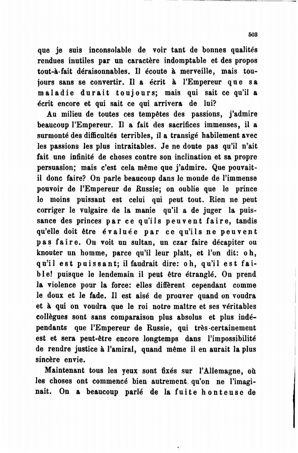 pouvoir de l'Empereur de Russie; оп oublie que le prince