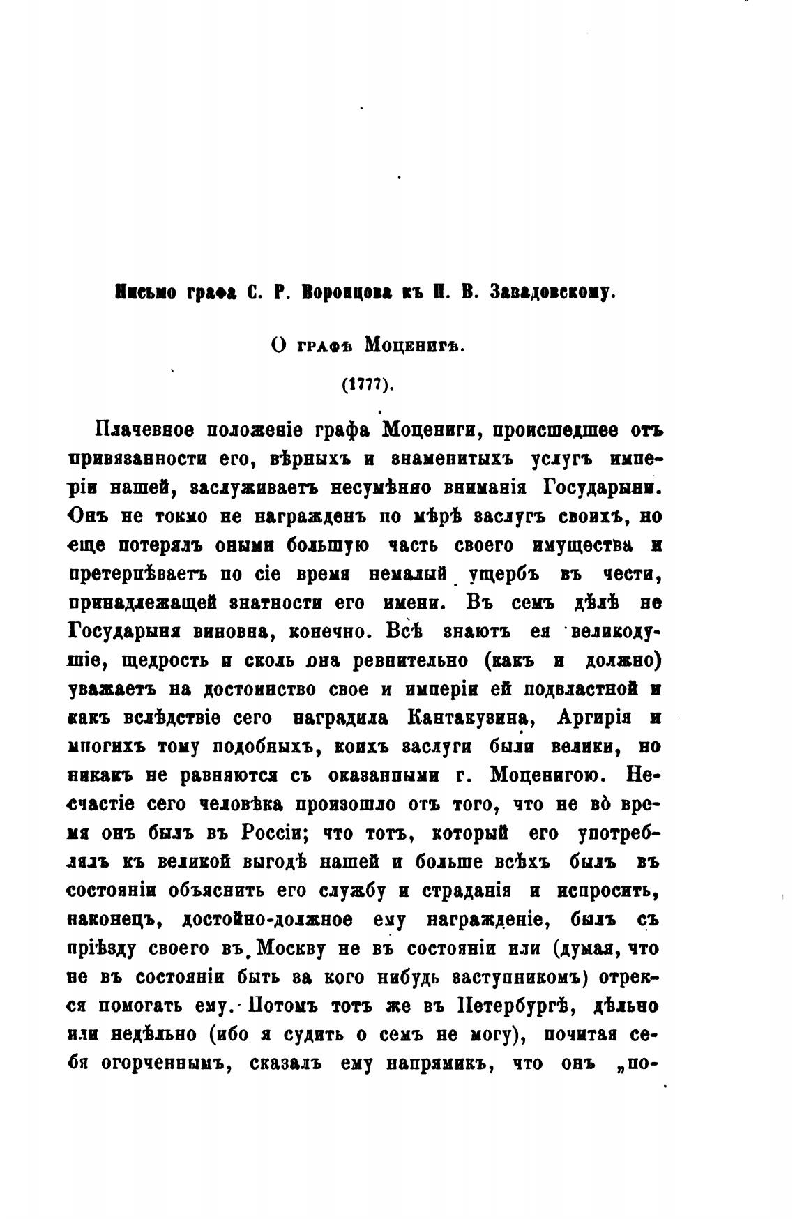 Нисьио граев С. Р. Вороцовв кь П. В. Завадовскоиу.