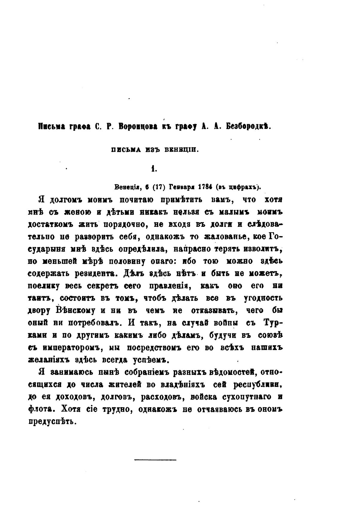 Письма rpa•a С. Р. Воронцова кь гра•у А. А. Безбород“.