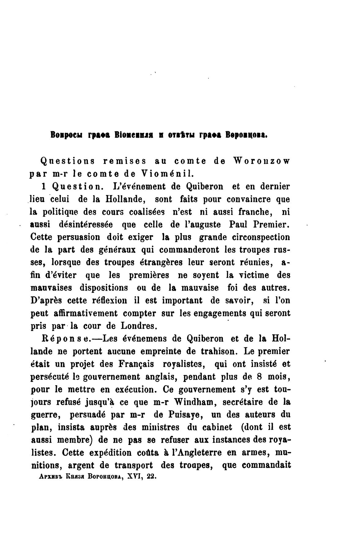 Qnestions remises аи comte de Woronzow