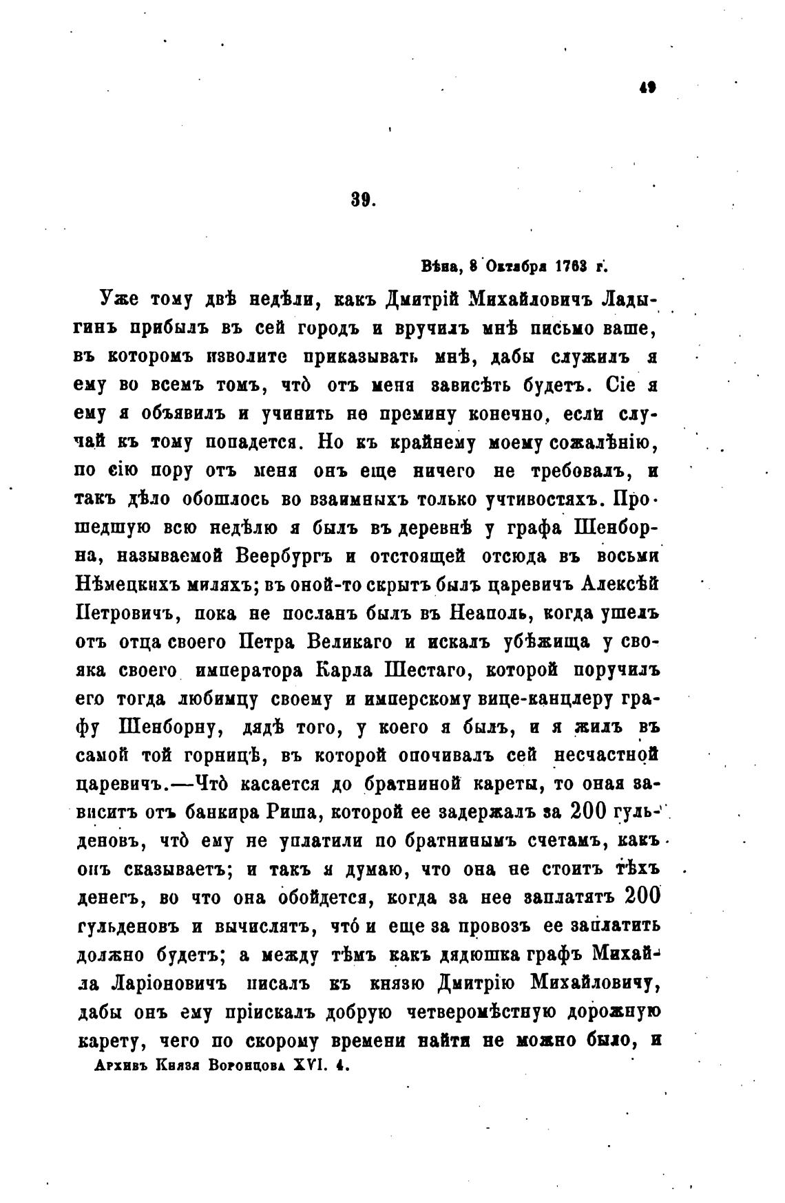 гинь прибыдъ въ сей городь и вручихь мн•Ь письмо ваше,