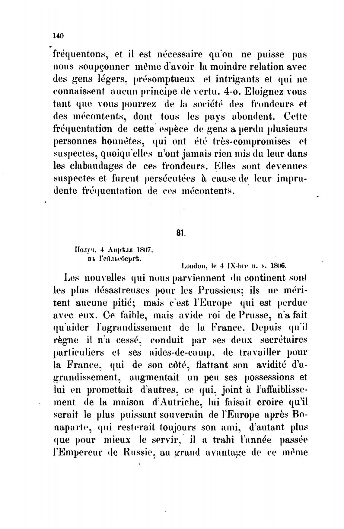 l'Empereur (le Ru.ssie, аи grand avantage de се тёте