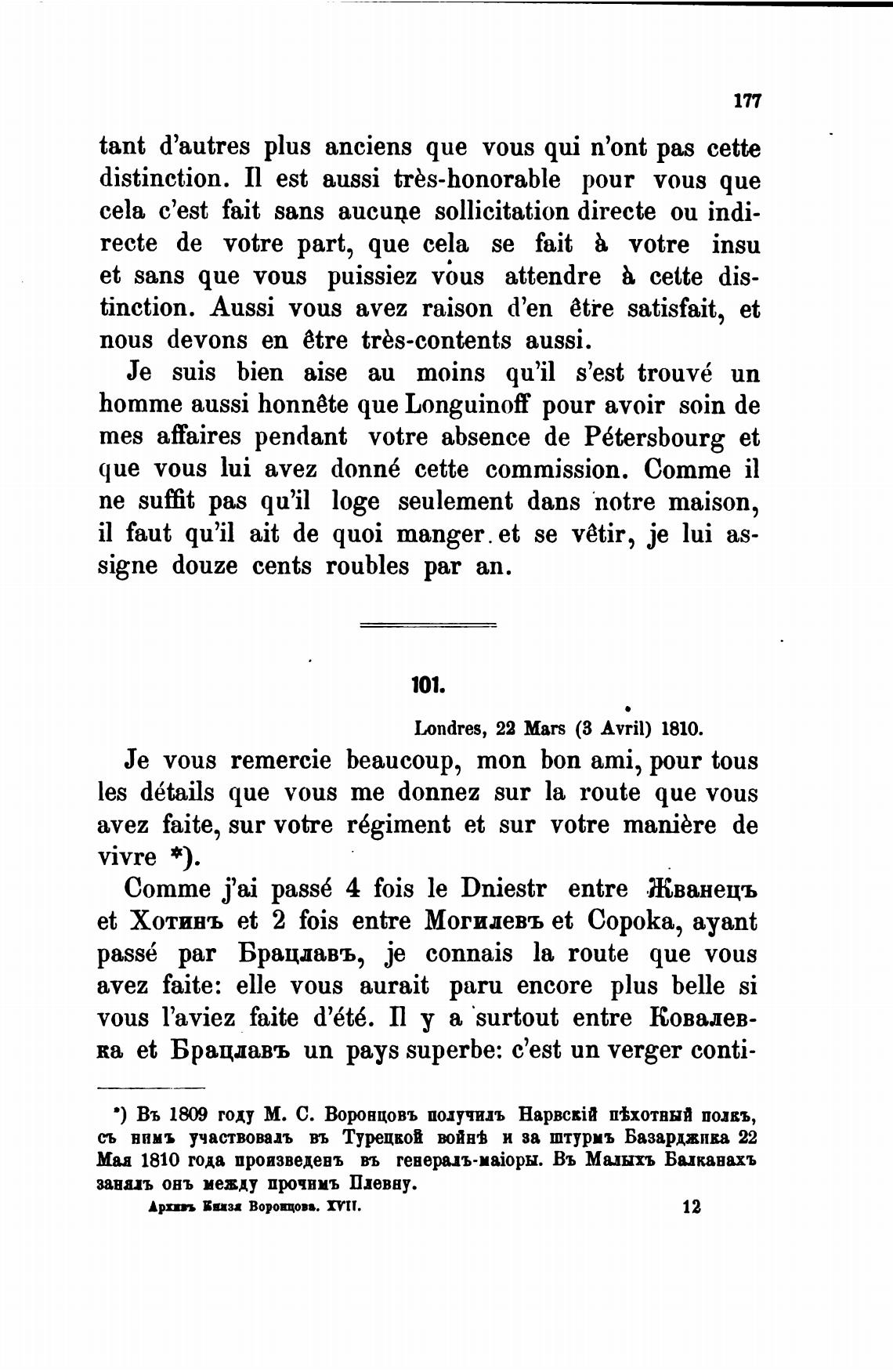 в) Въ году М. С. Воронцовъ получилъ птхотвый полкъ,