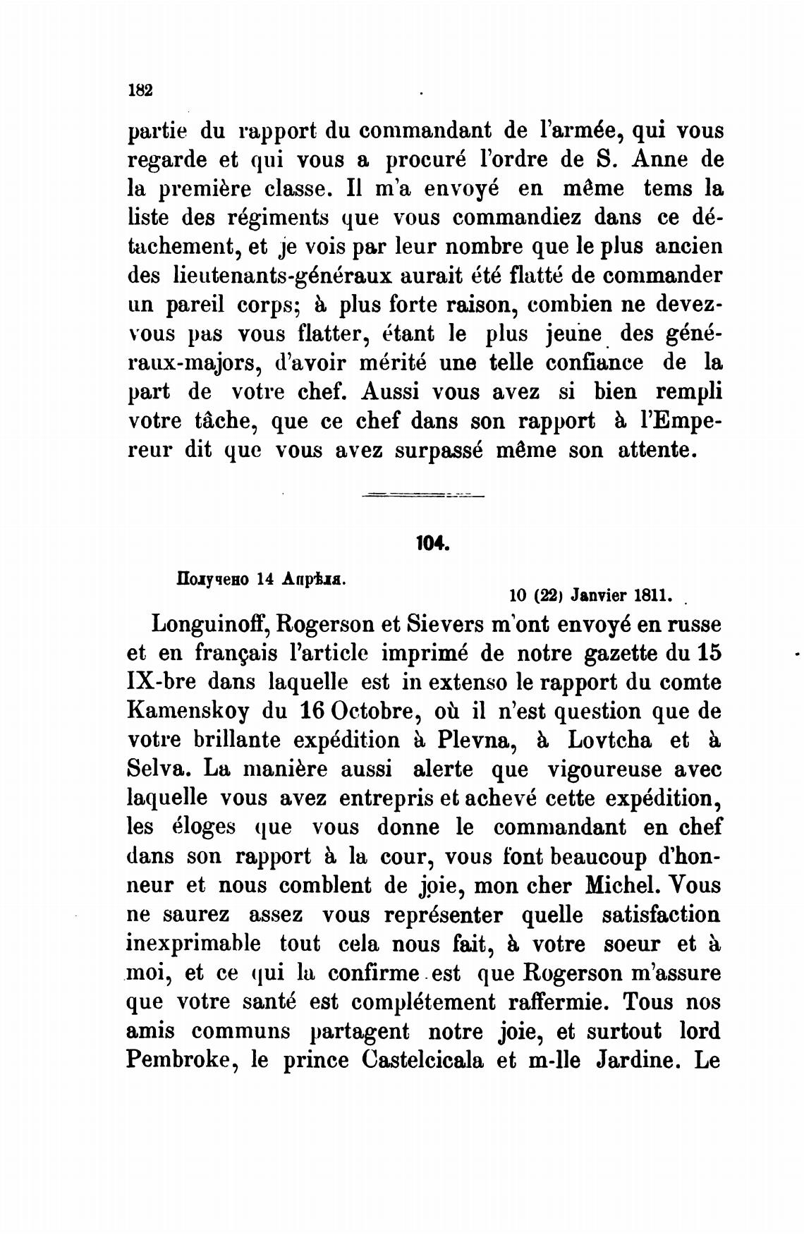 Longuinof, Rogerson et Sievers m'ont envoy6 еп russe