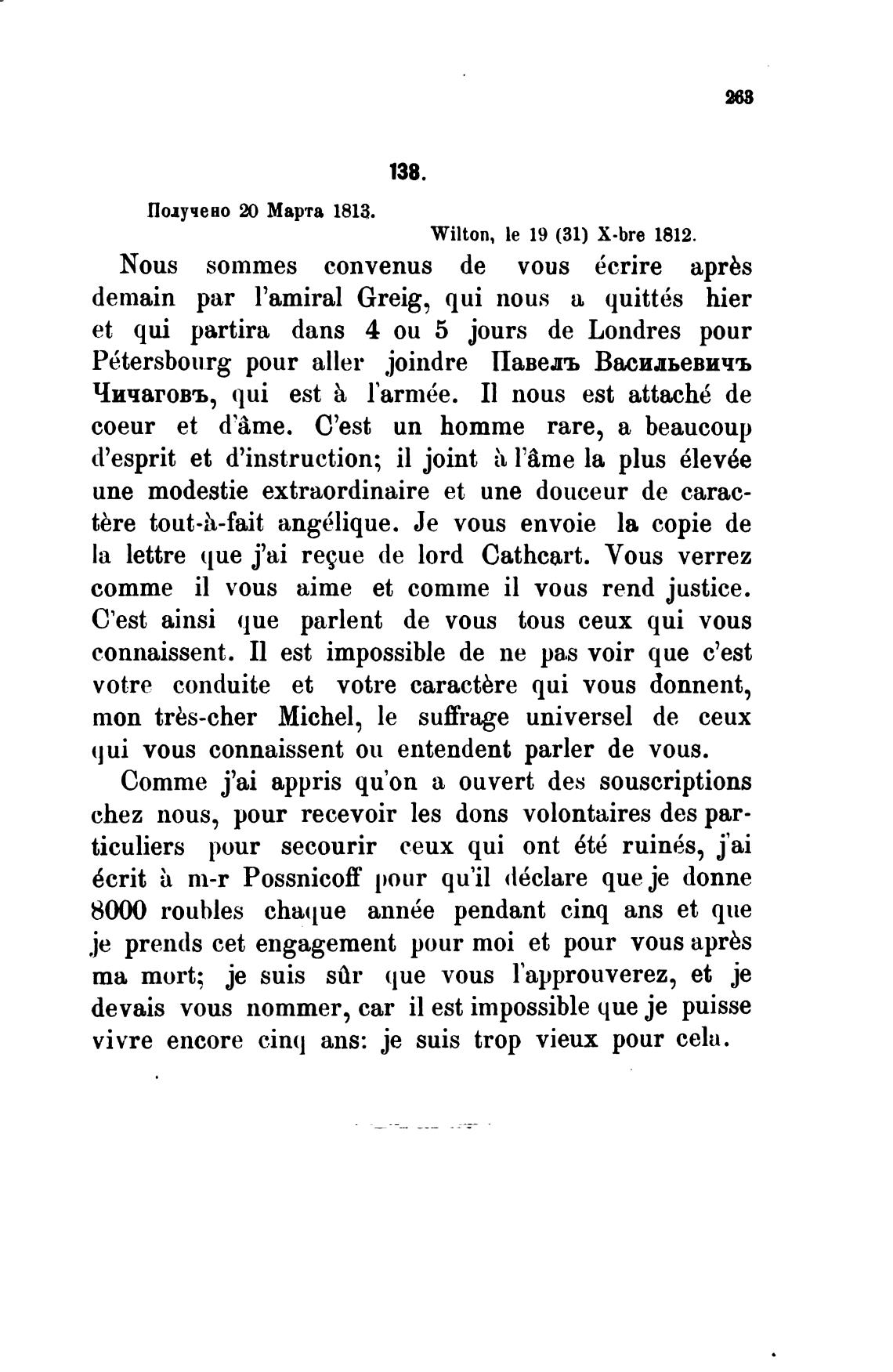 Wilton, le 19 (31) X.bre 1812.