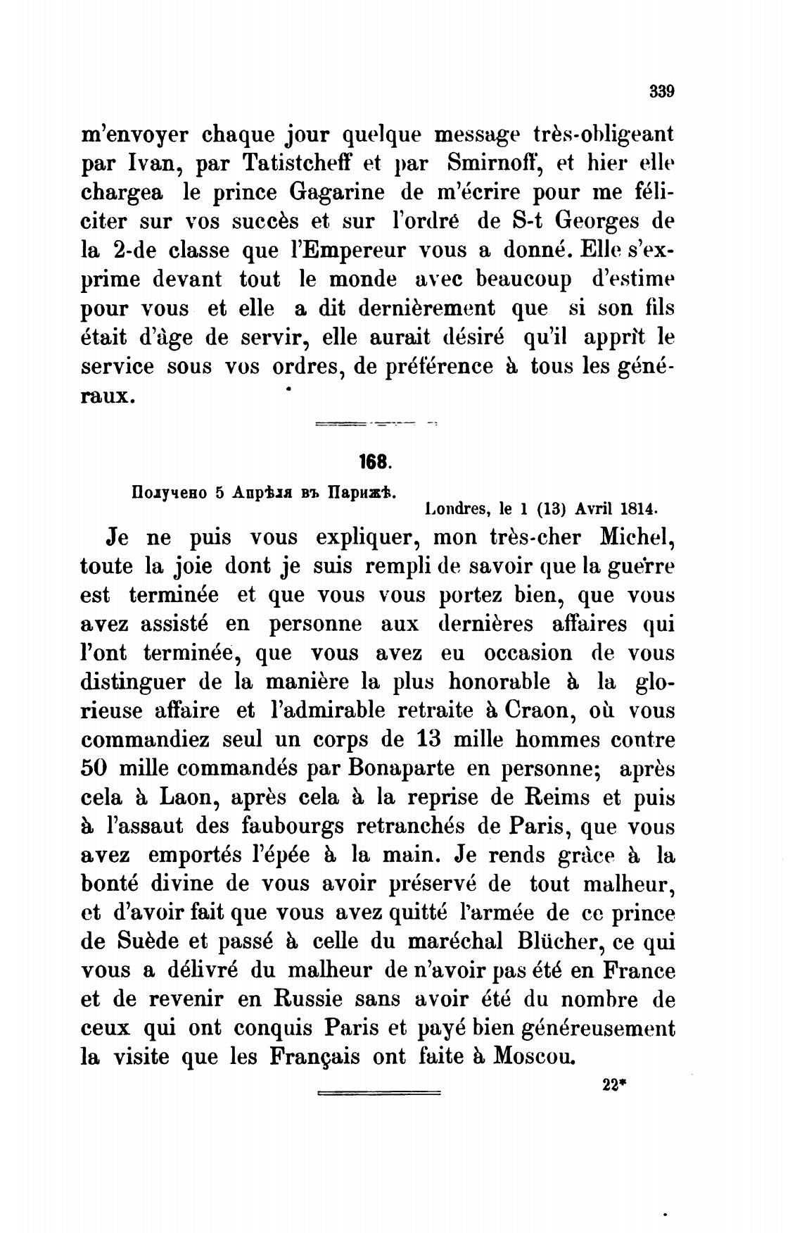 l,ondres, le (13) Avril 1814.