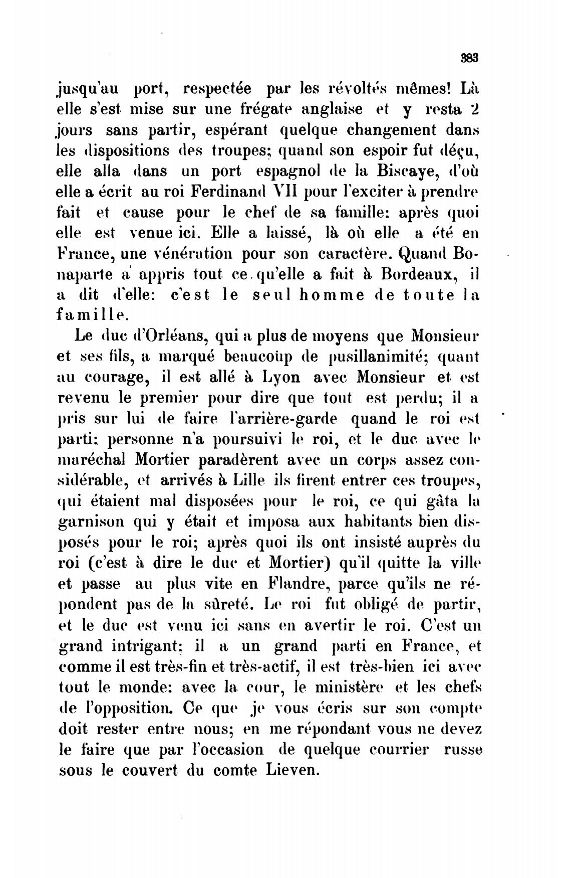 sous le couvert du comte Lieven.
