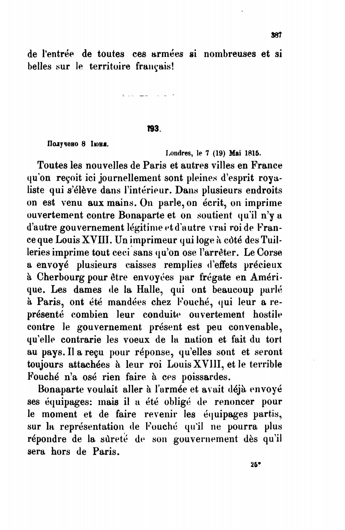Londres, le 7 (19) Mai 1815.