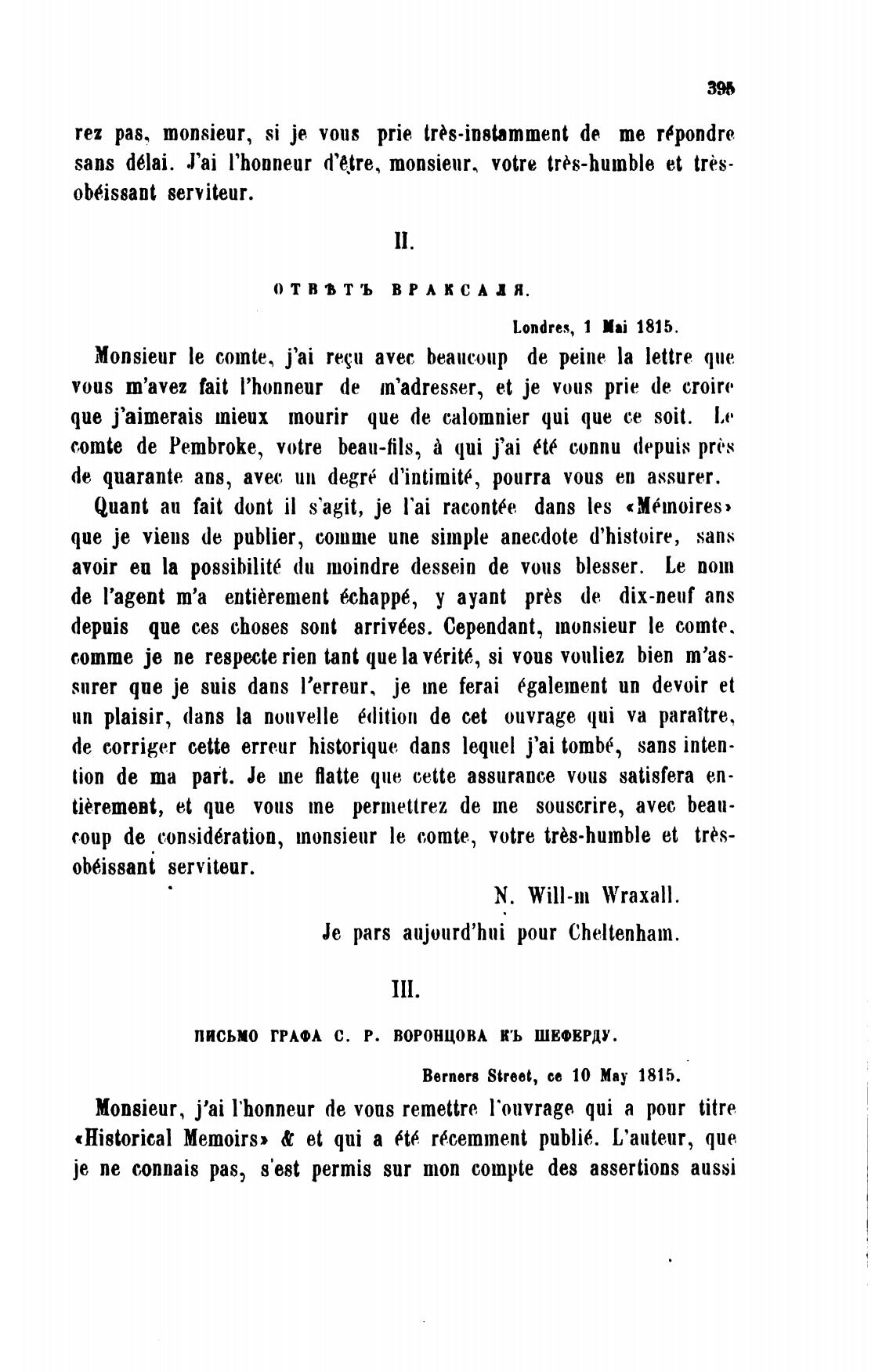 ПИСЬМО ГРАФА С. Р. воронцовА КЬ ШЕФВРДУ.