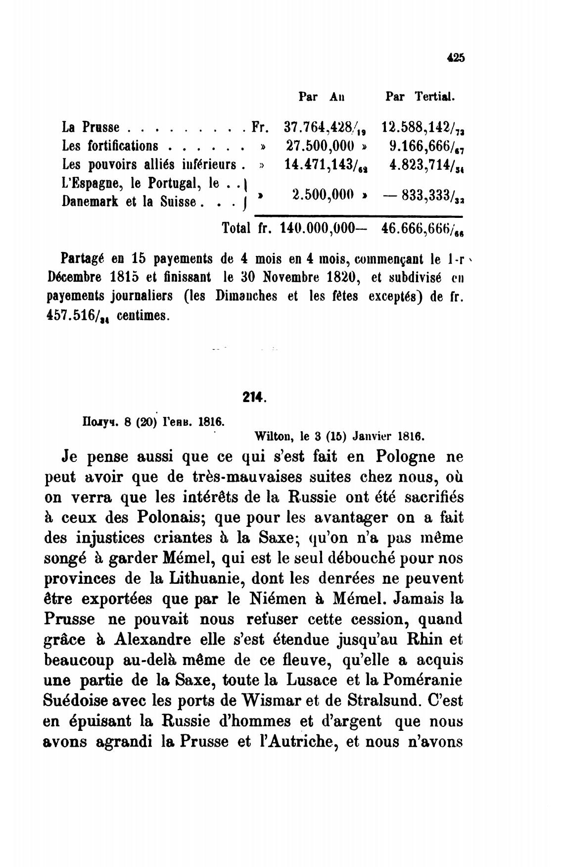 Wilton, le 3 (15) Janvier 1816.