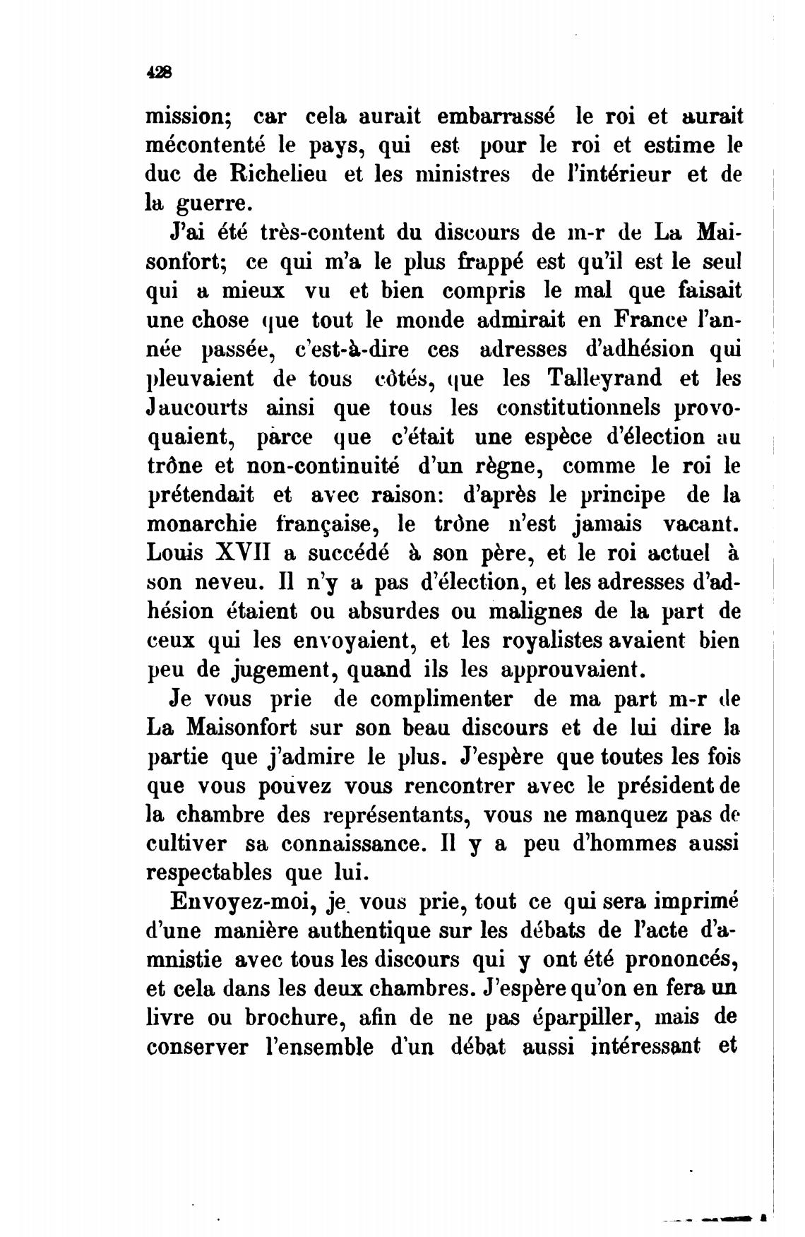 La Maisonfort sur son beau discours et de lui dire la