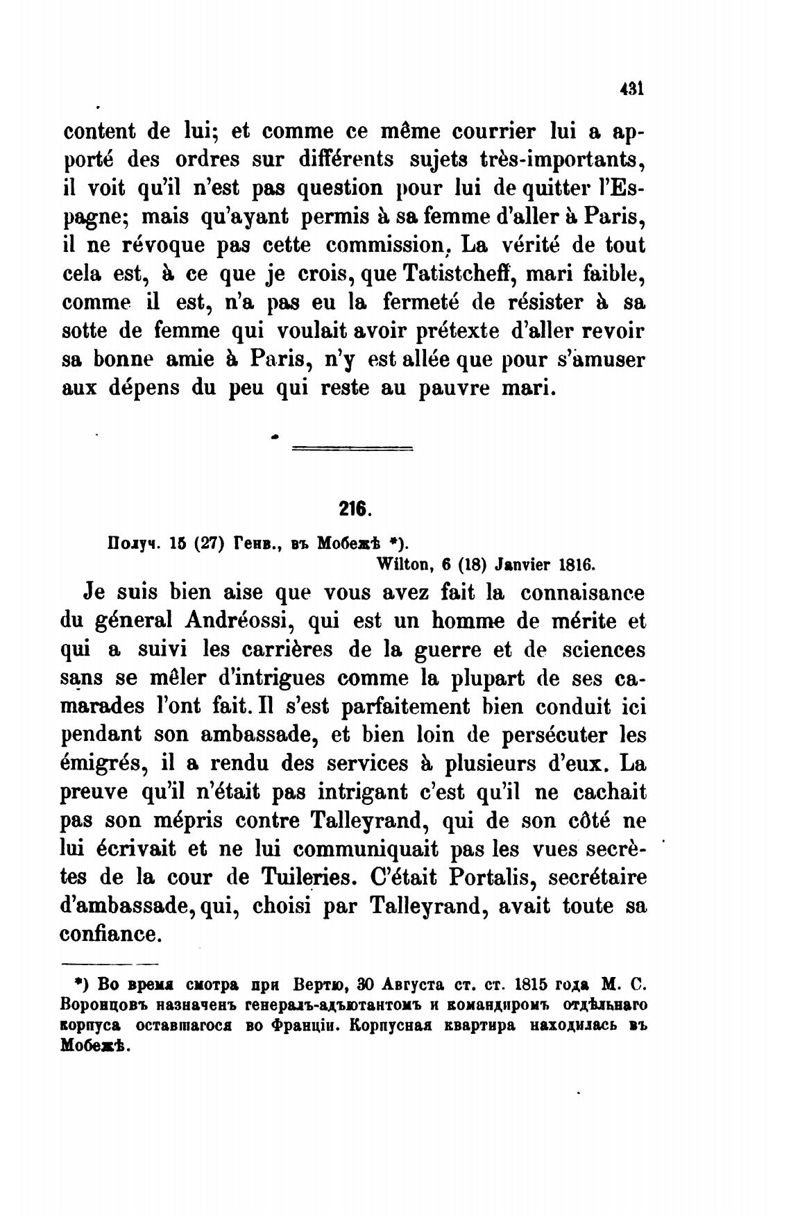 *) Во вра смотра пря Вертю, Августа ст. ст. 1815 года М. С.