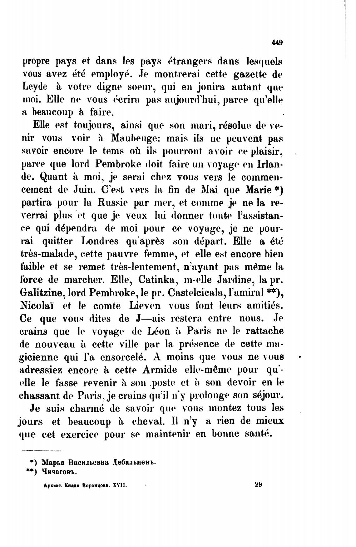 т) Марья Васильевна Дебальменъ.