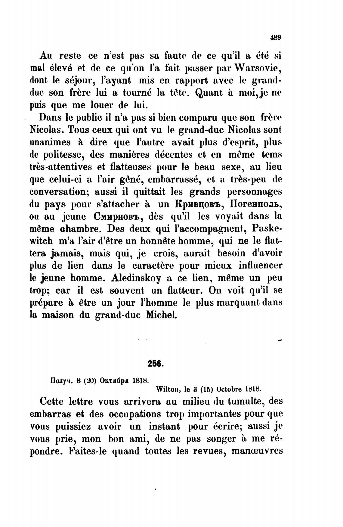Wilton, le З (15) ()ctobre 1818.