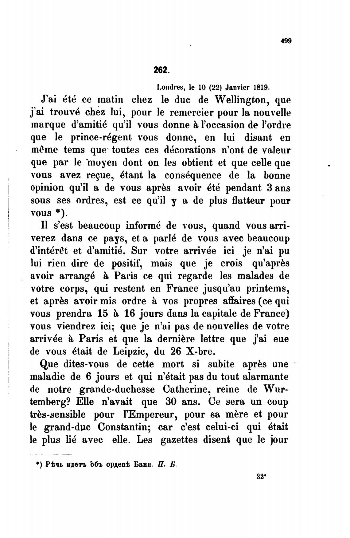 Londres, le 10 (22) Janvier 1819.