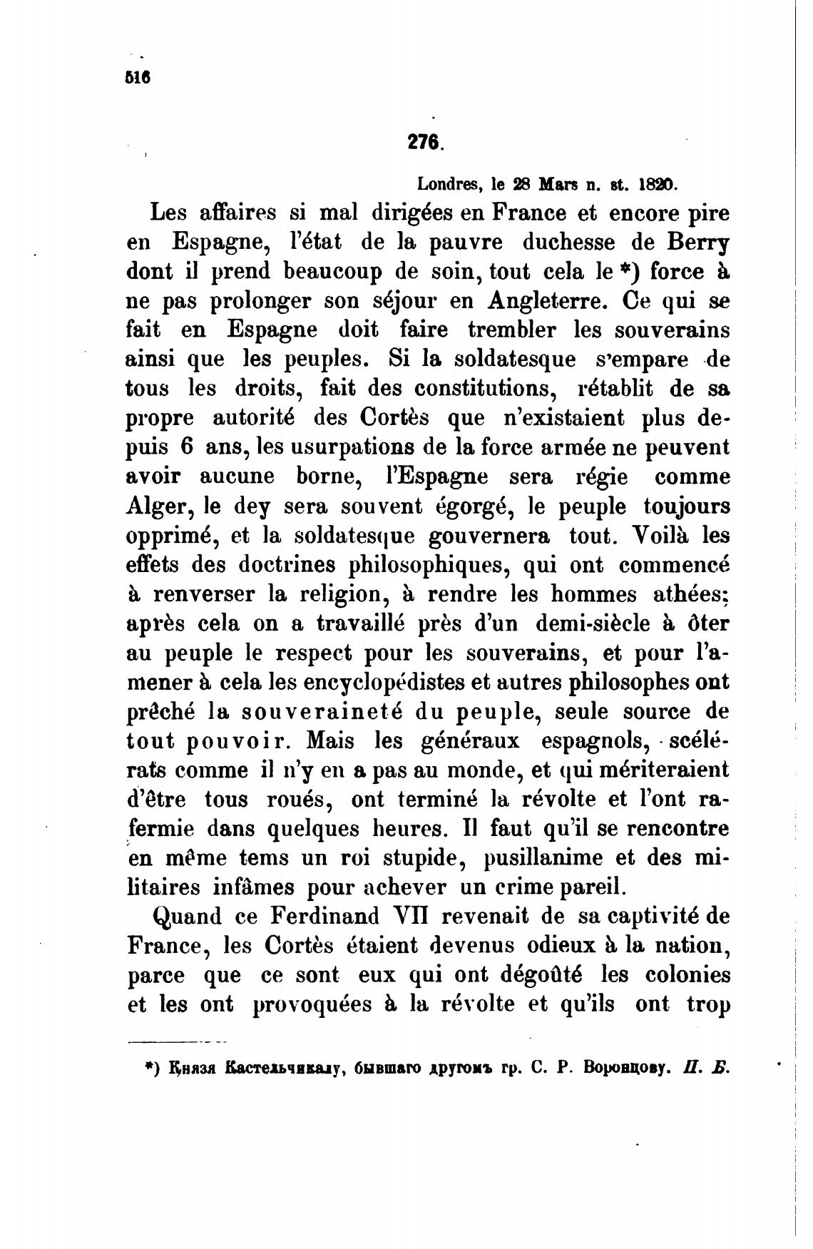 е) Внязя Кастедьчввыу, бывшвго друтиъ гр. С. Р. В«иювцову. И. Б.