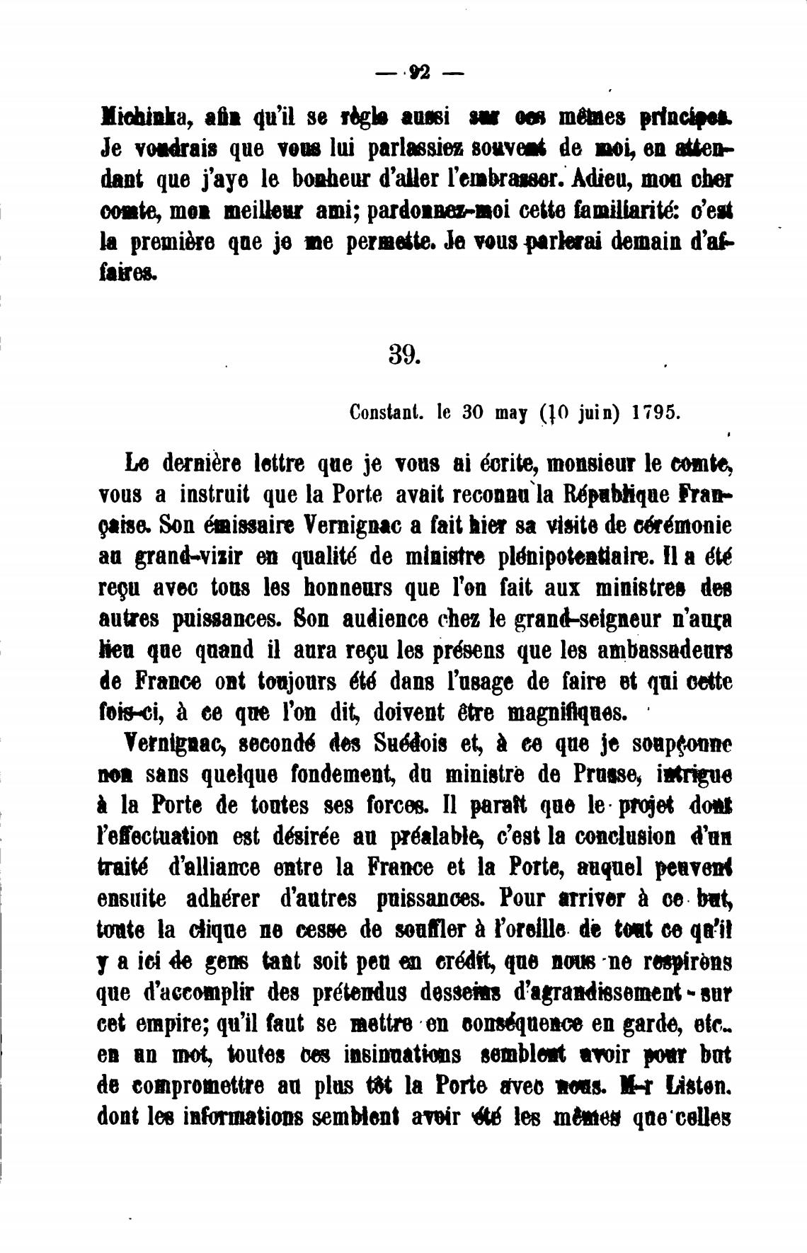 vous а instruit que la Porte avait reconna la Ri*qae Fran-