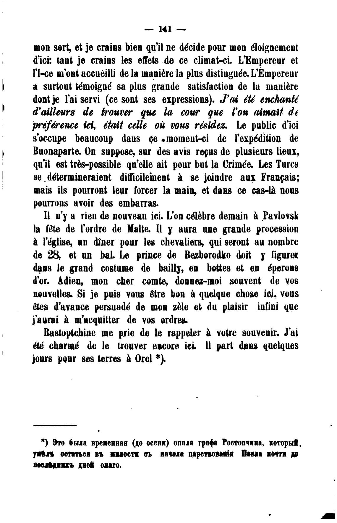 *) Это был временная (до осени) опап графа Ростопчина, воторыа.