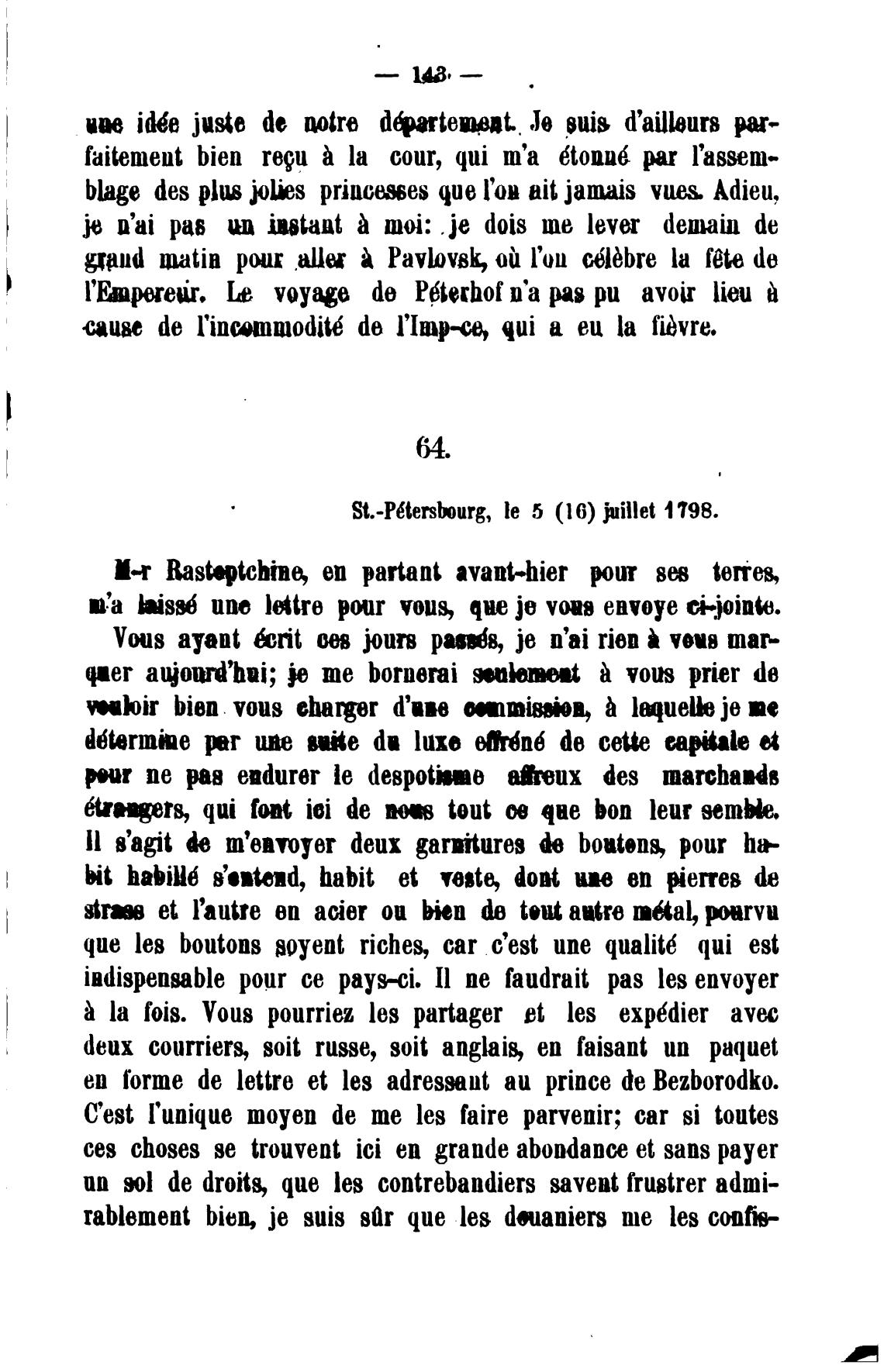 еп forme de lettre et les аи prince de Bezborodko.