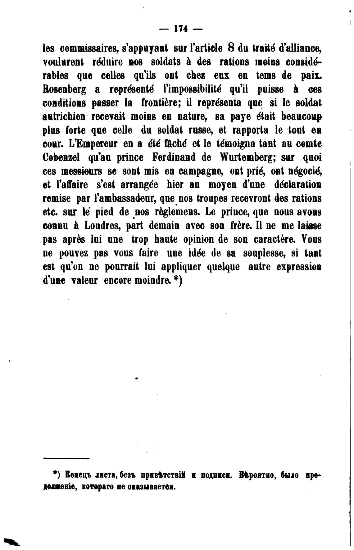 Cobenzel qu'au prince Ferdinand de Wurtemberg; sur quoi