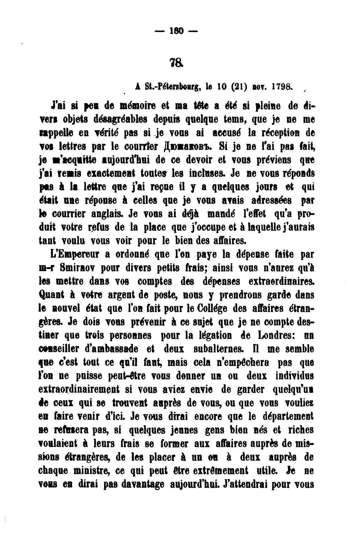 А St.-P6ters»ug, le 10 (21) вот. 1798.