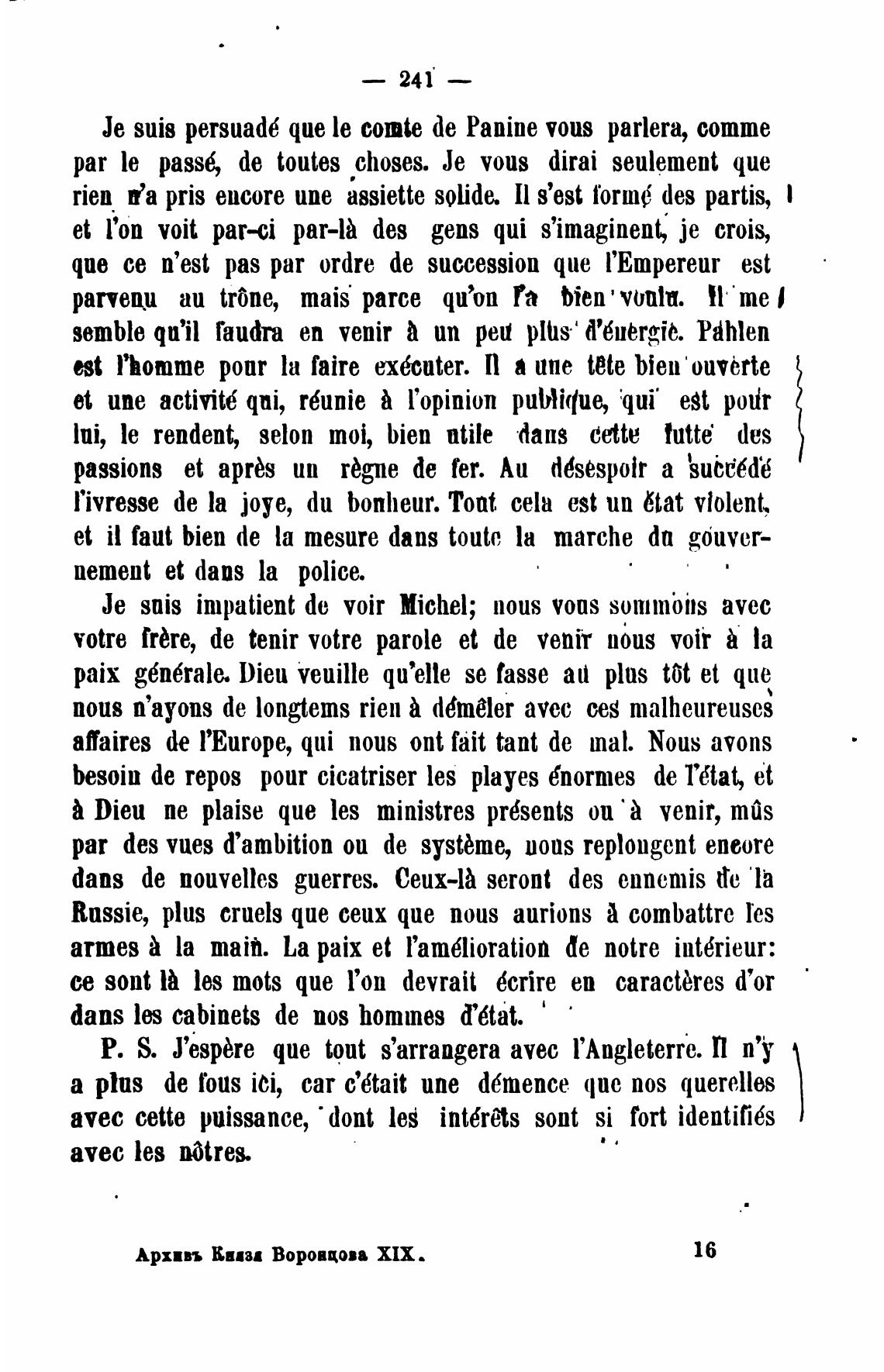 Је suis persuad6 que le сош'е de Panine vous parlera, сотте
