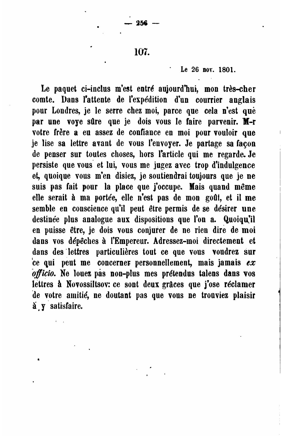 lettres Novossiltsov: се sont deux graces que j'ose r6clamer