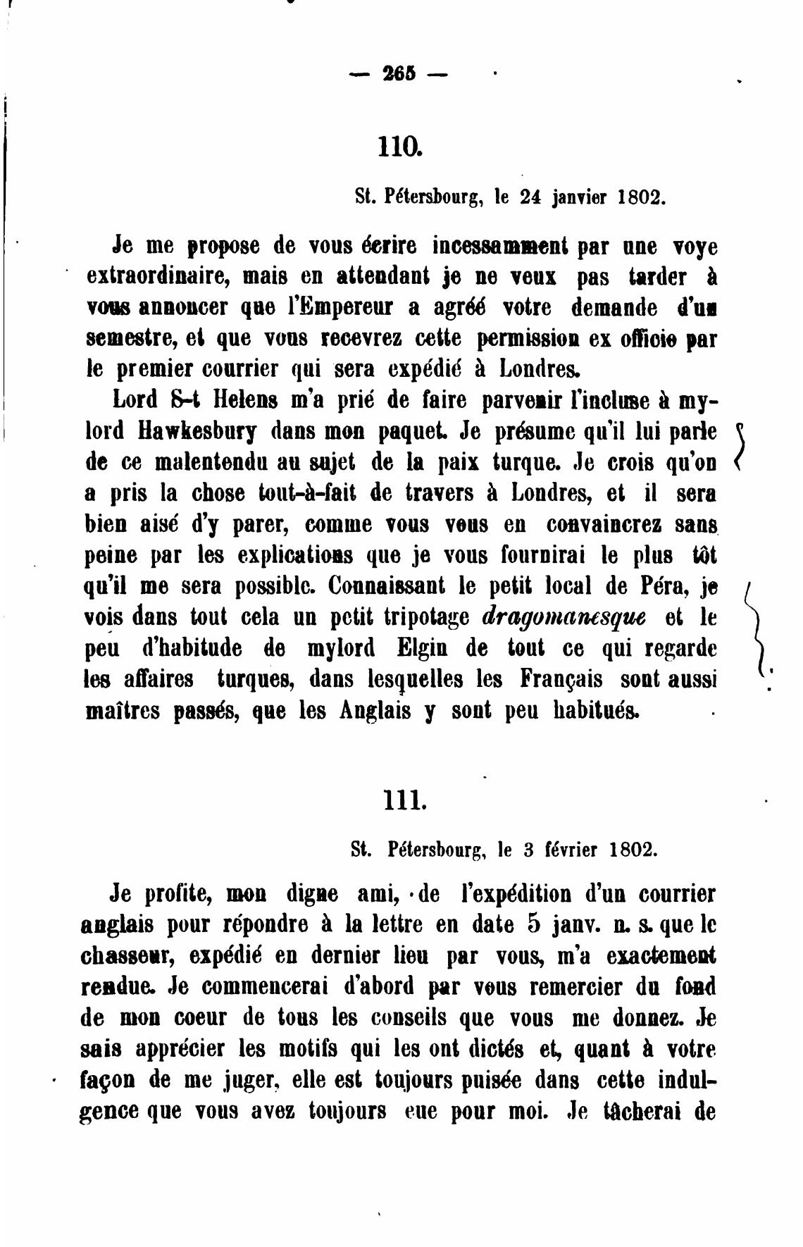 St. P6tersbourg, le 24 janvier 1802.
