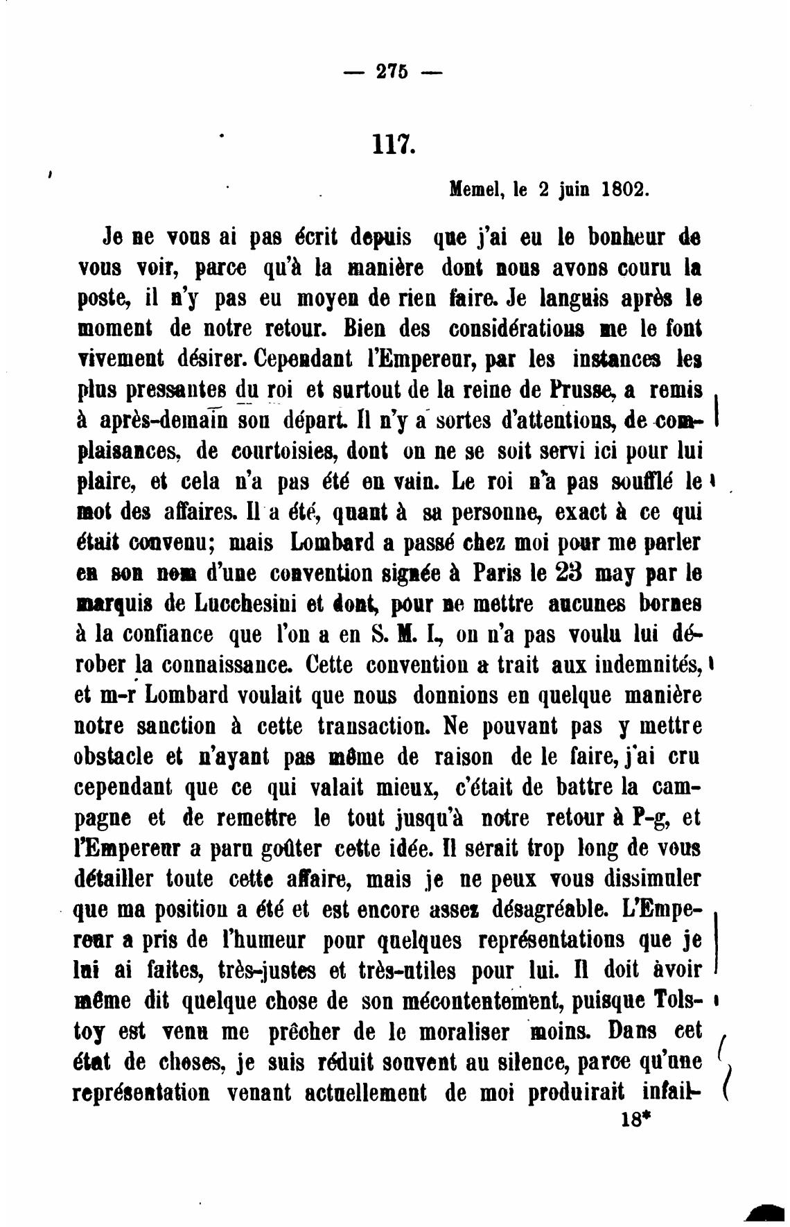 plus du roi et surtout de la reine de Prusse, а remis