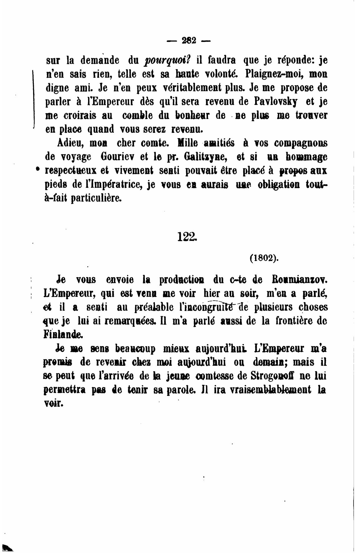 parler lEmpereur dbs qu'il sera revenu de Pavlovsky et је