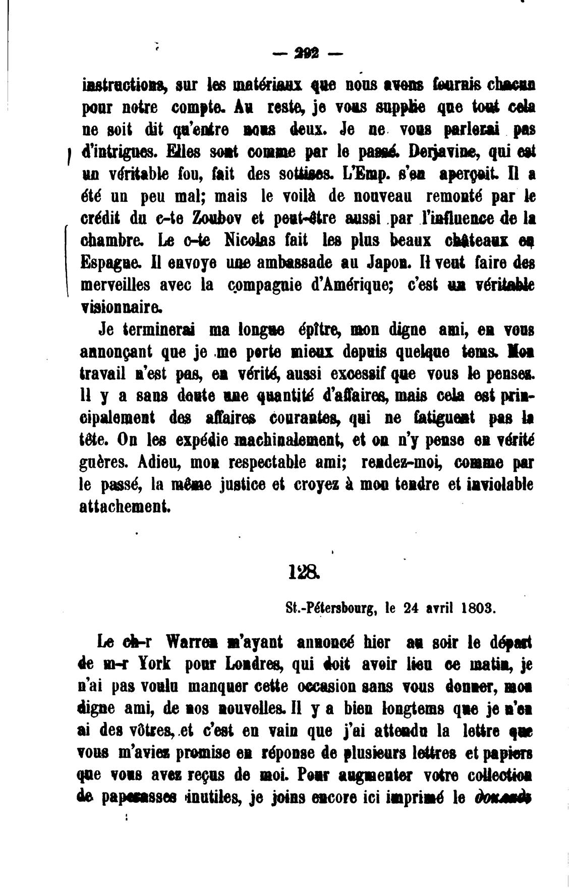 St.-P6tersbourg, le 24 avril 1803.