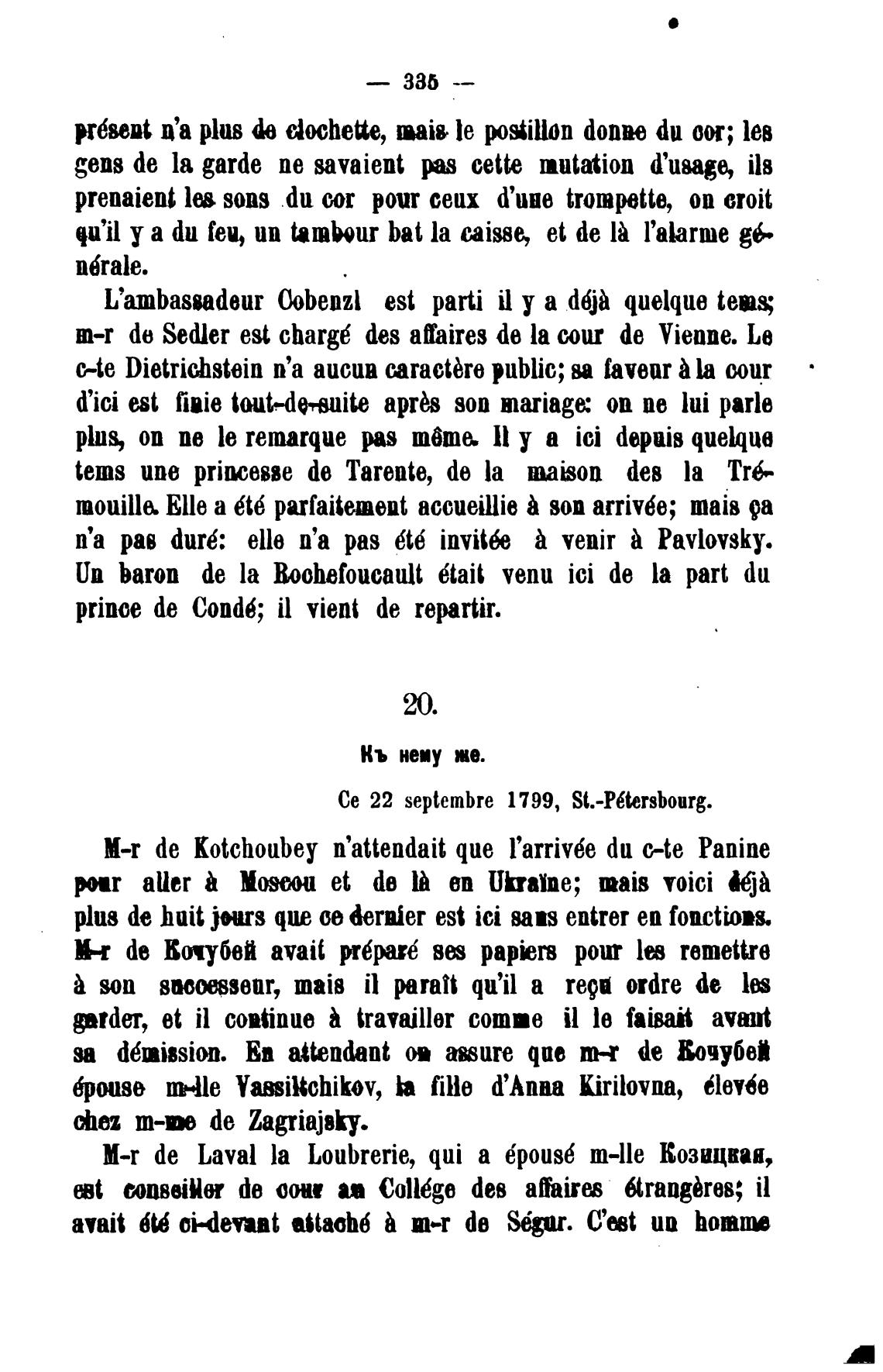 Се 22 septembre 1799, St.-P6tersbourg.