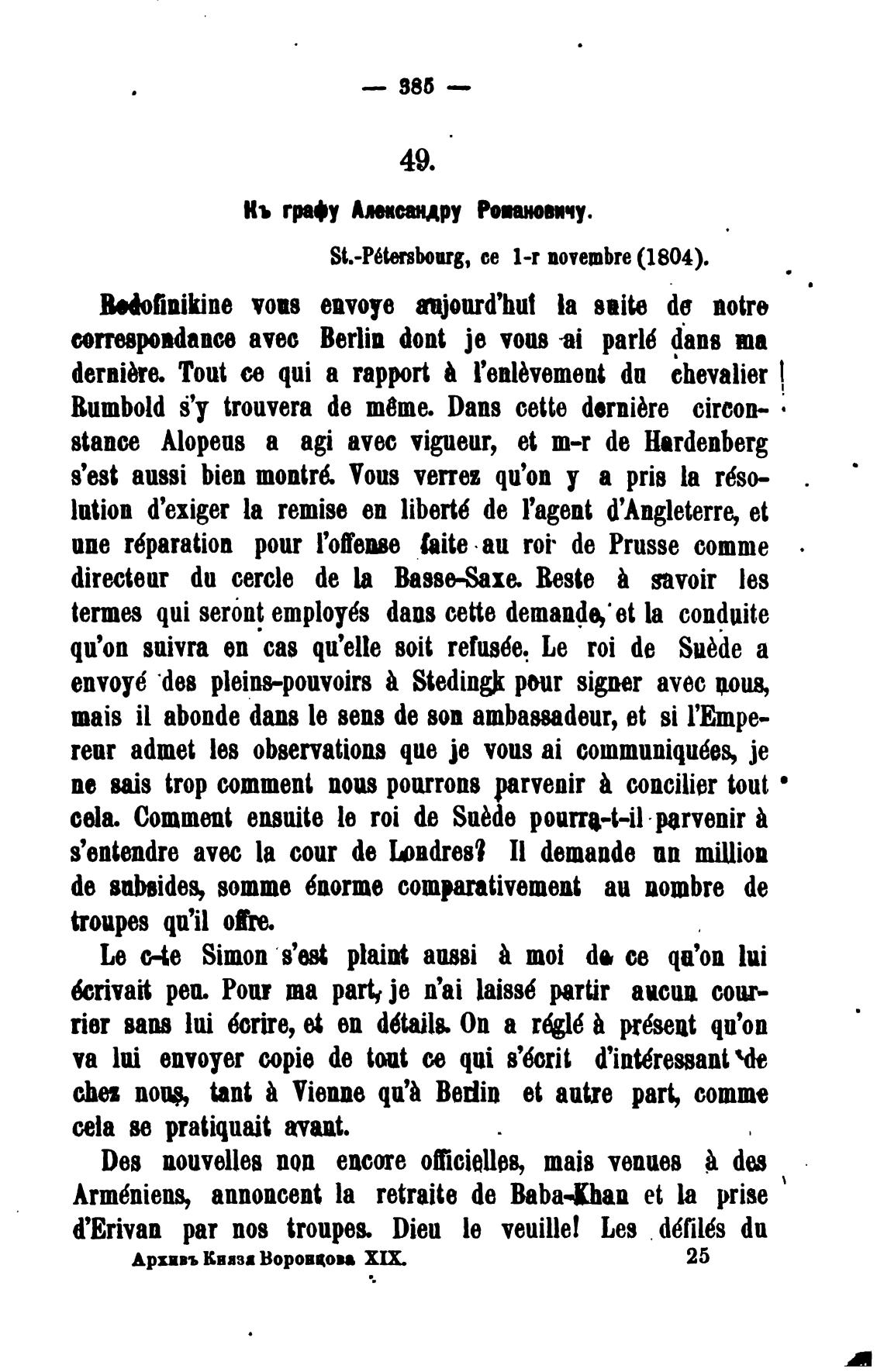 St.-P6tersbourg, се 1-r novembre (1804).