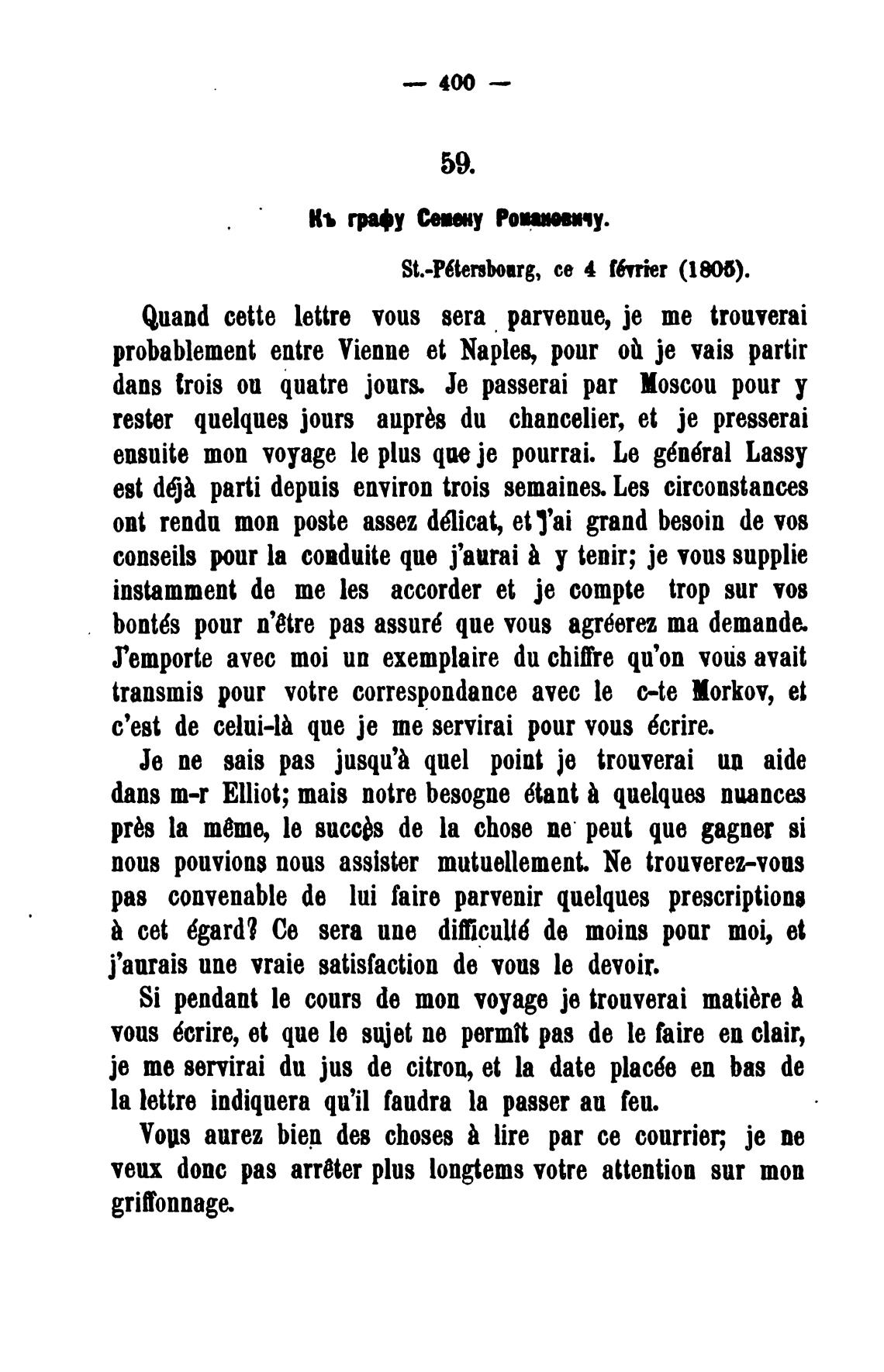 transmis роит votre correspondance анес le c-te Norkov, et