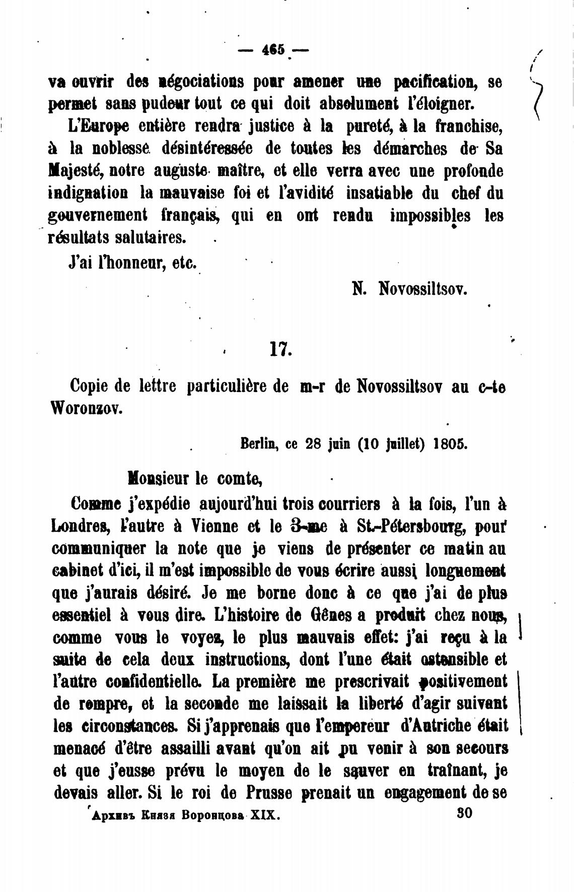 Copie de lettre particulibre de m-r de Novossiltsov аи c-te