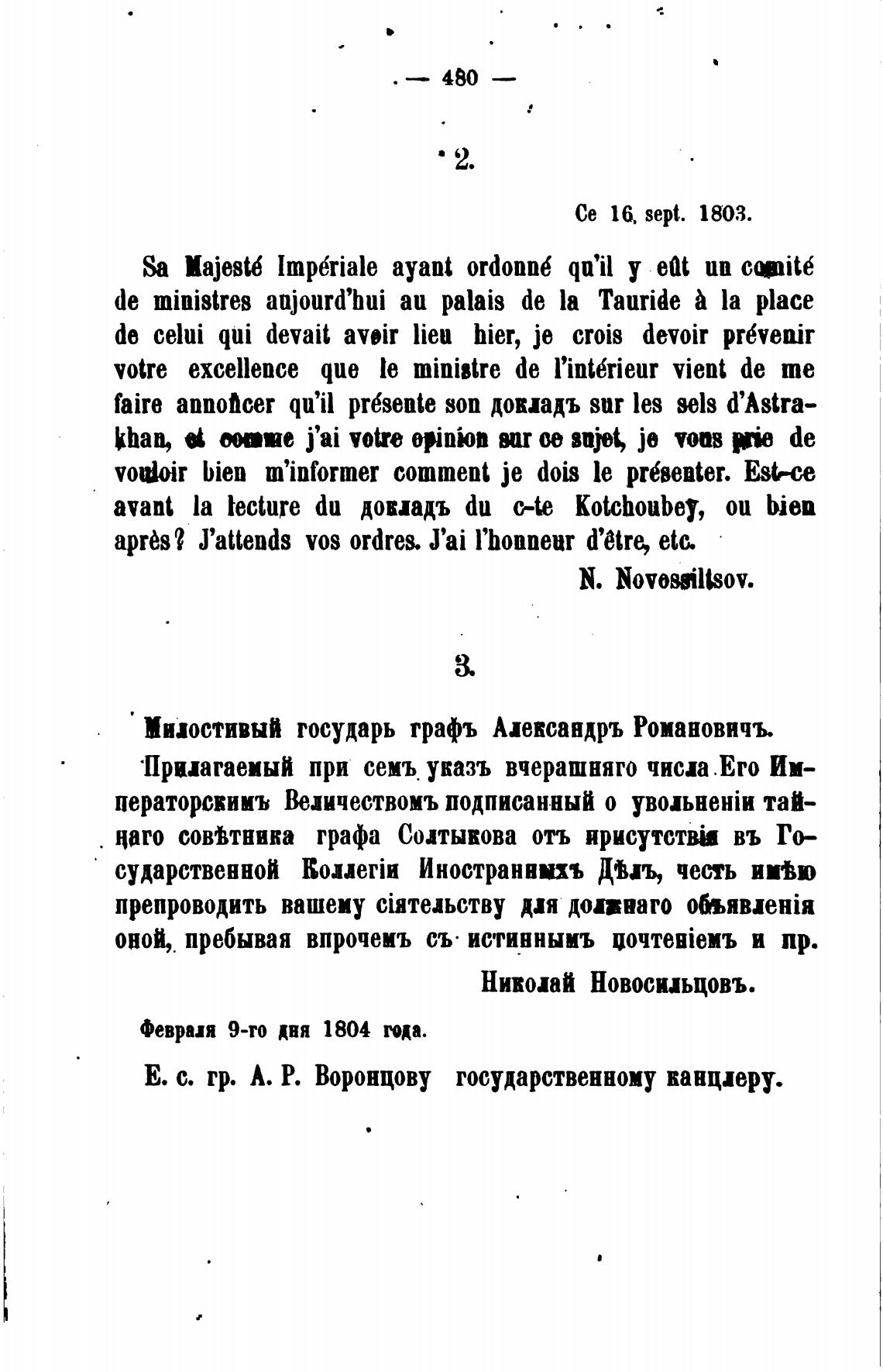 Е. с. гр. А. Р. Воронцову государственному канцлеру.