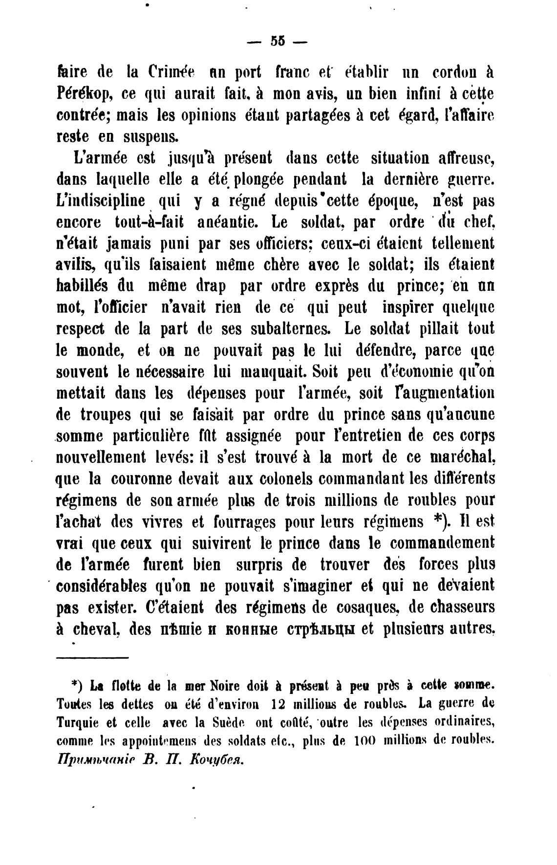 сотте, les appointemens des soldats etc., plns de 10() millions de roubles.