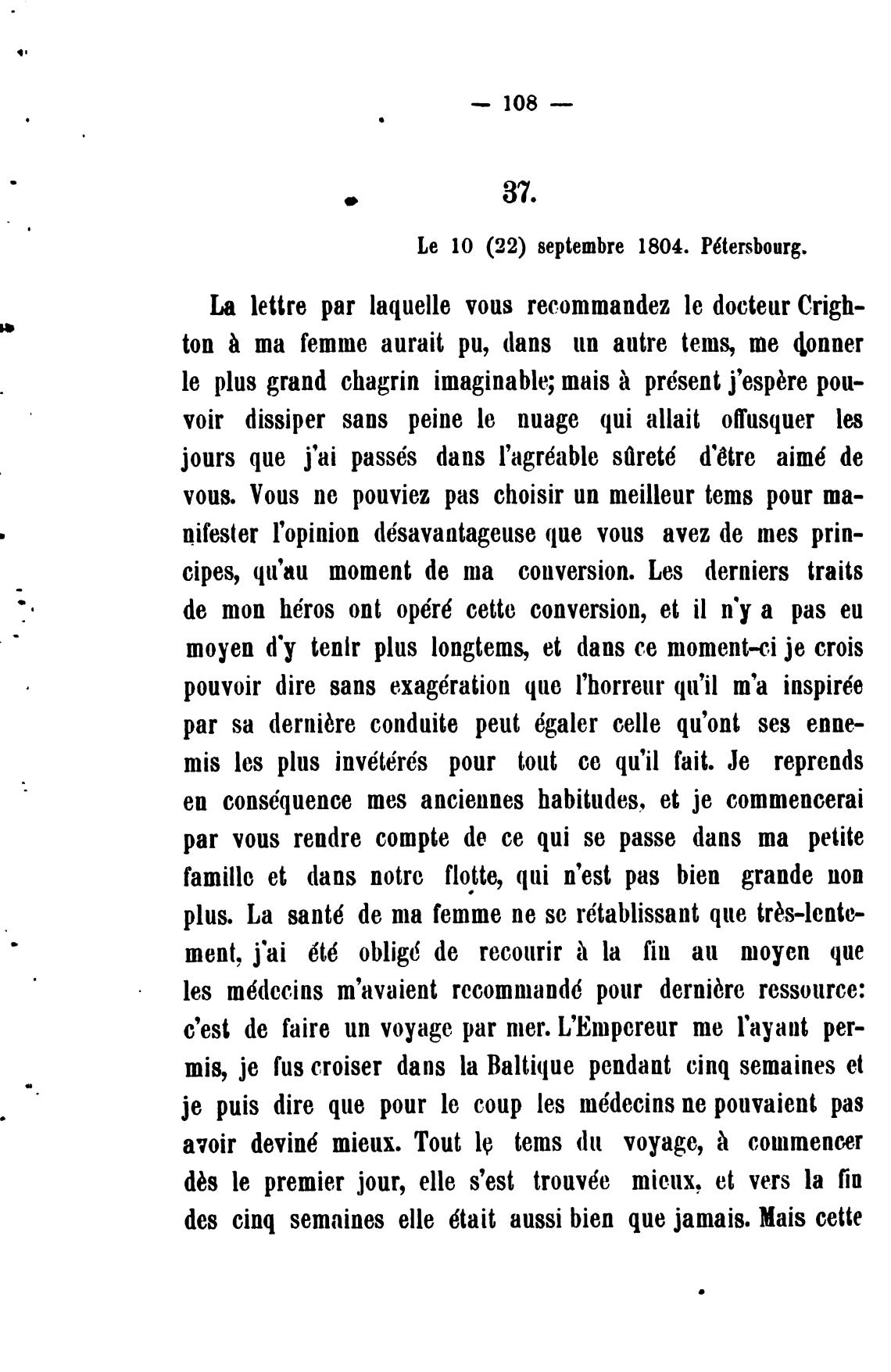 Le 10 (22) septembre 1804. P6tersbourg.