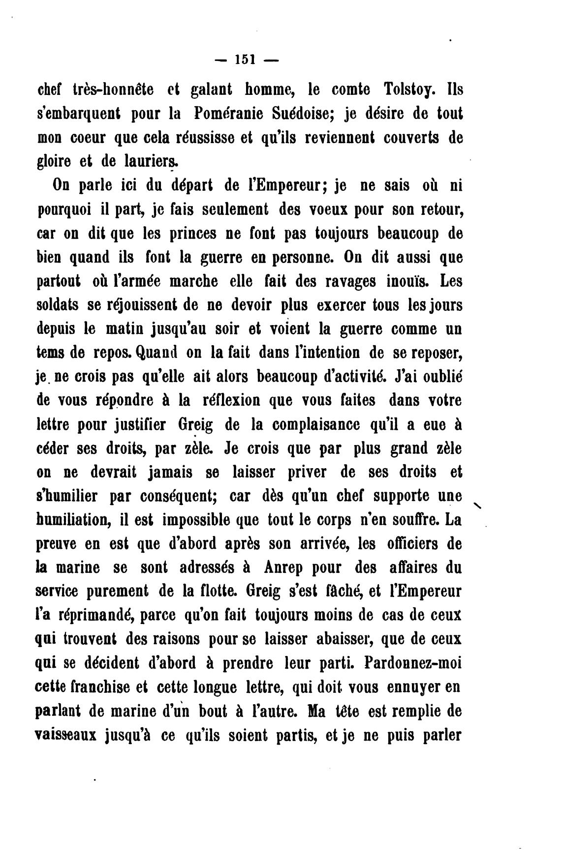 service purement de la flotte. Greig s'est fAch6, et l'Empereur
