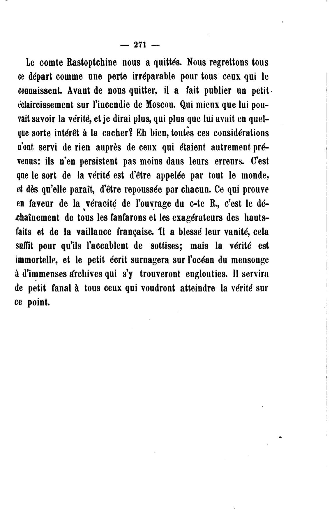 Le comte Rastoptchine nous а quitt6s. Nous regrettons tous