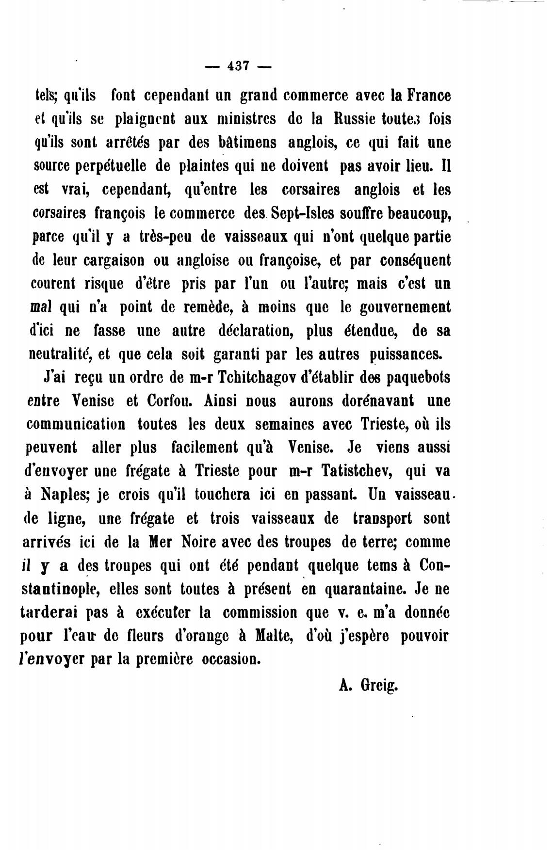 J'ai reyu ип ordre de m-r Tchitchagov d'6tablir paquebots