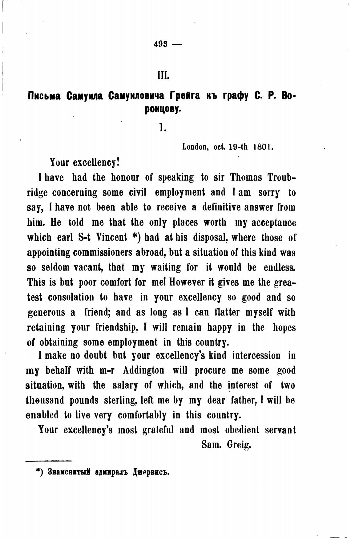Письма Самуила Самуиловича Грейга кь графу С. Р. Во-