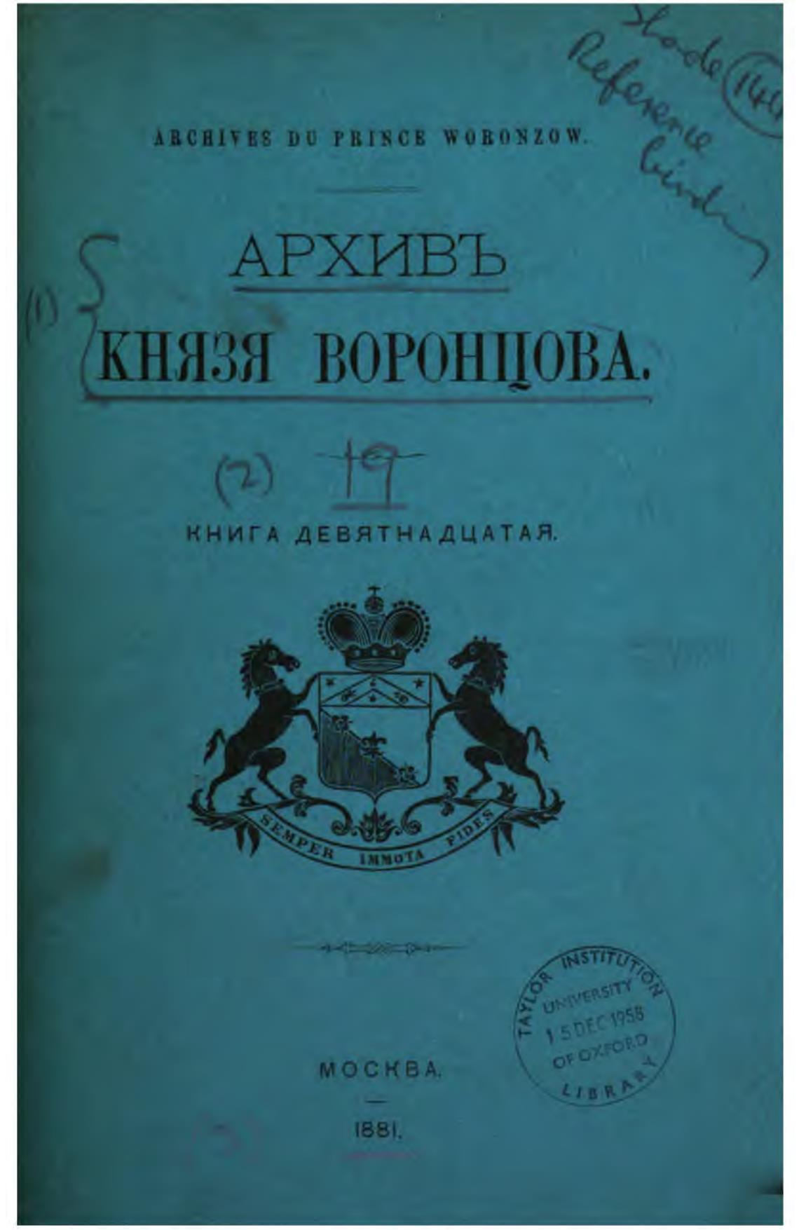 Архив князя Воронцова. Кн. 19. Бумаги графов Александра и Семена Романовичей Воронцовых. Переписка с П. В. Чичаговым и Грейгами - Бартенев П. И.