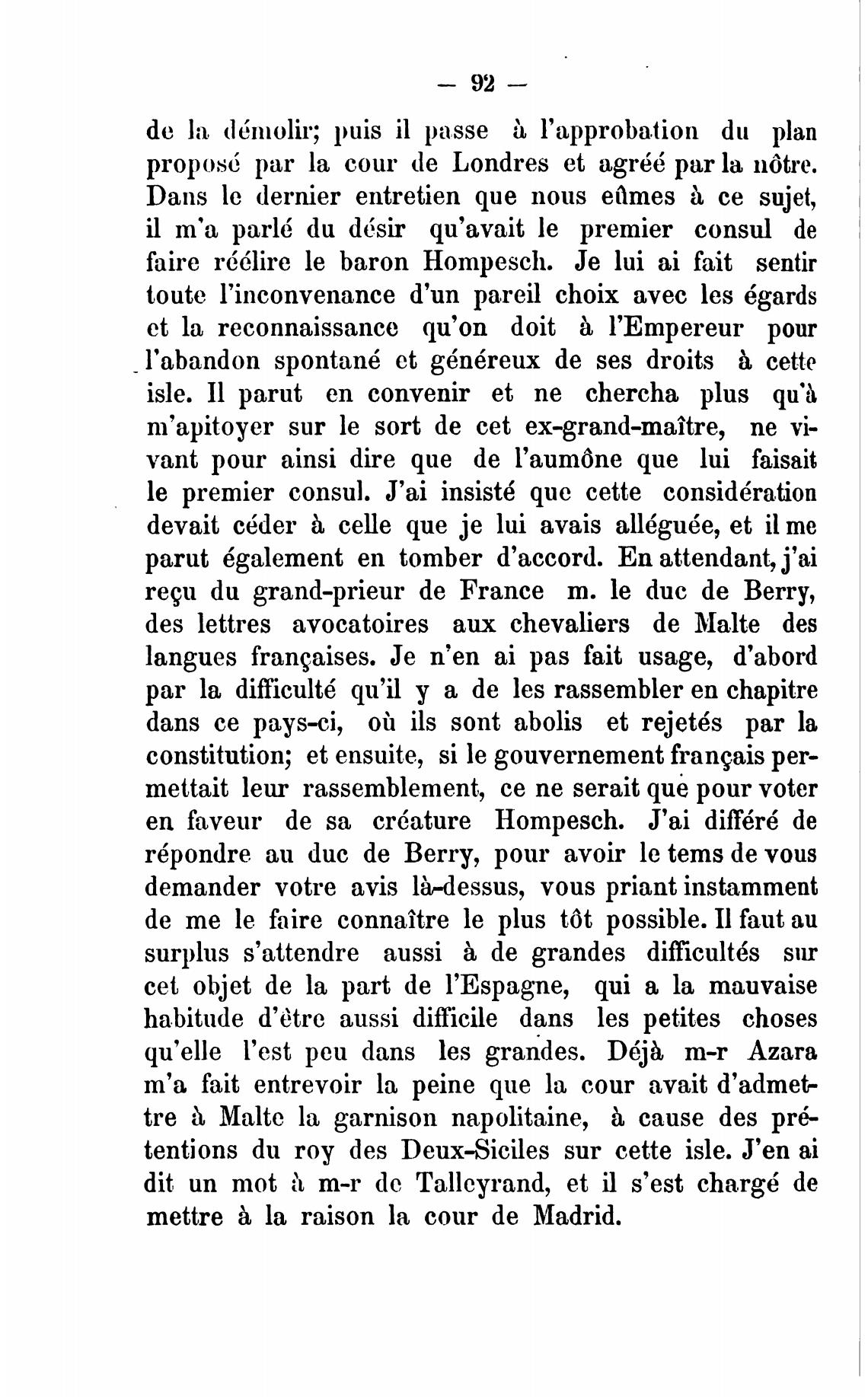 faire r66lire le baron Hompesch. Је lui ai fait sentir