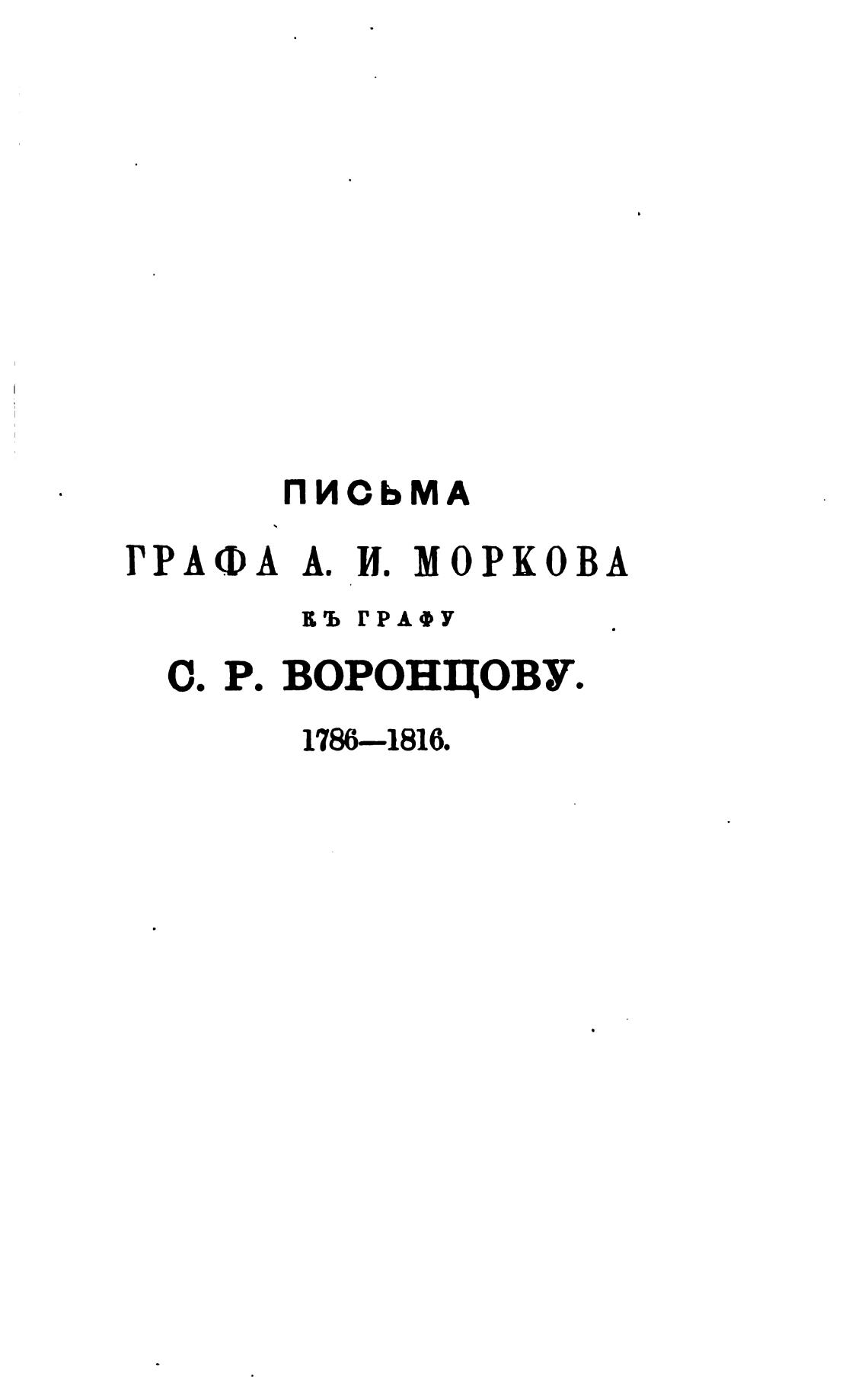 Архив князя Воронцова. Кн. 20. Бумаги графов Александра и Семена Романовичей Воронцовых. Письма графа Маркова, Тамары, Италинского, барона Грима, Лизакевича. - Бартенев П. И.