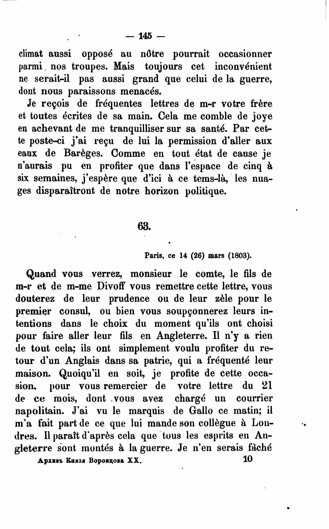 Paris, се 14 (26) mars (1803).