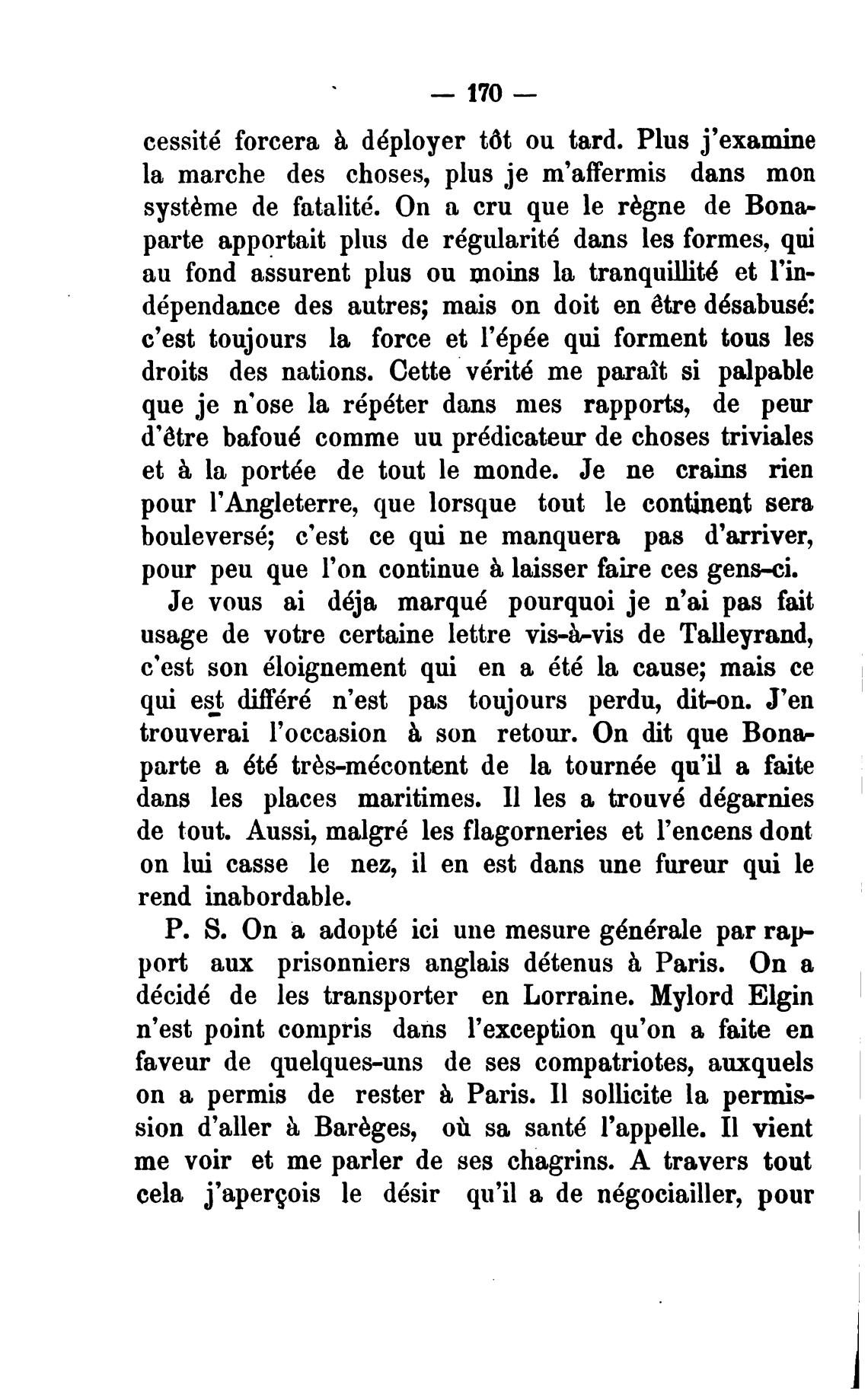 usage de votre certaine lettre vis-bvis de Talleyrand,