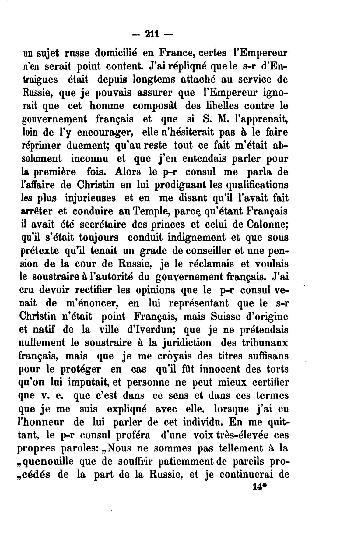 sion de la cour de Russie, је le r6clamais et voulais