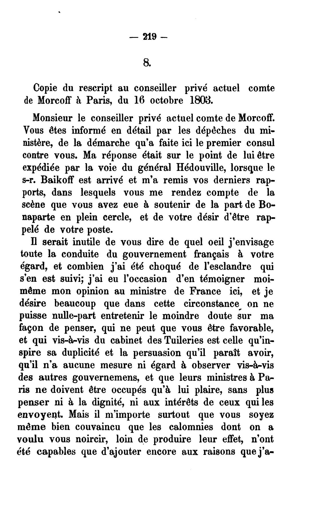 Monsieur le conseiller priv6 actuel comte de Morcof.