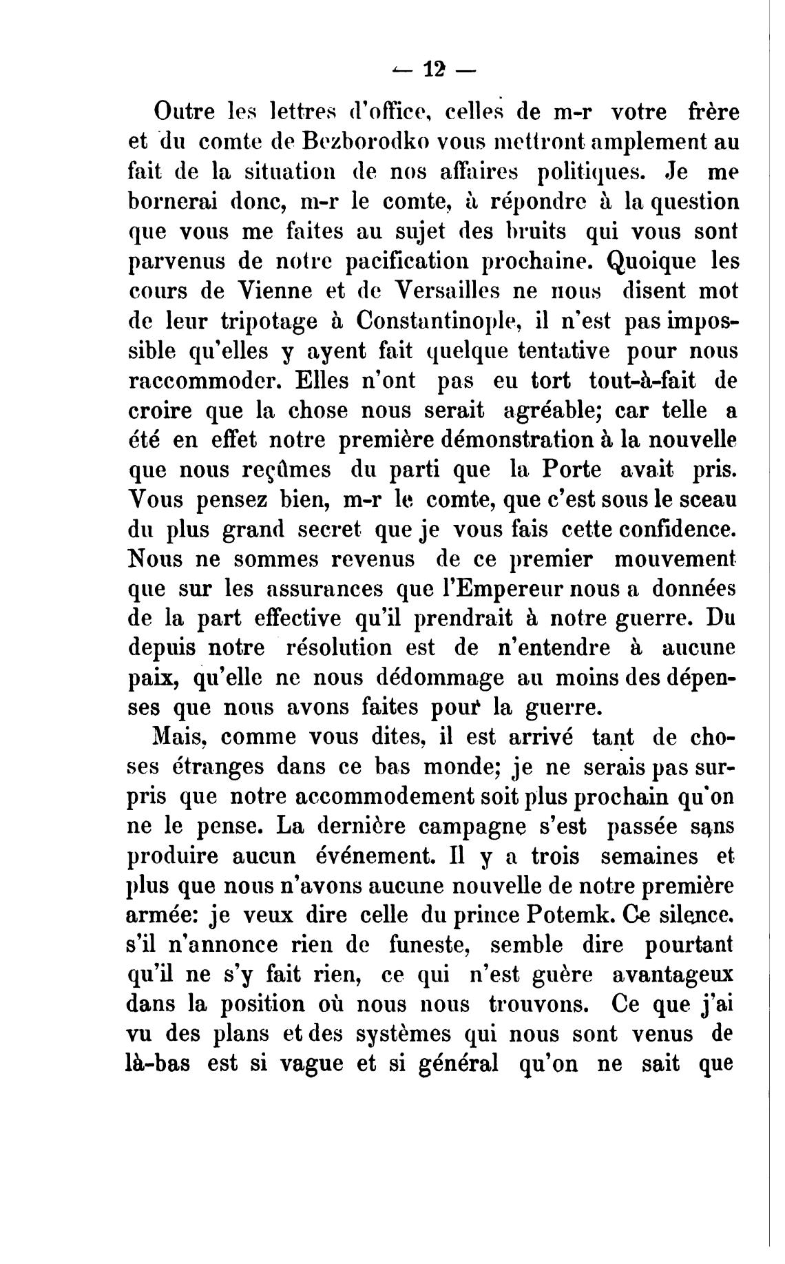 et du comte de Bezborodko vous nwttront amplement аи